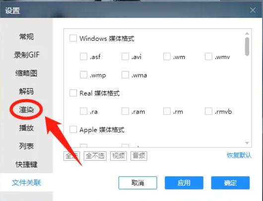 3、在打开的窗口界面中,点击左侧栏中的"渲染"选项。