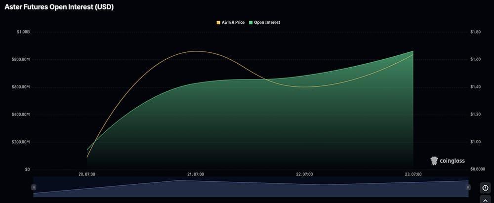 CoinGlass 显示 Aster 对的未平仓兴趣不断上升,这表明高杠杆加密货币交易者的信心不断增强。