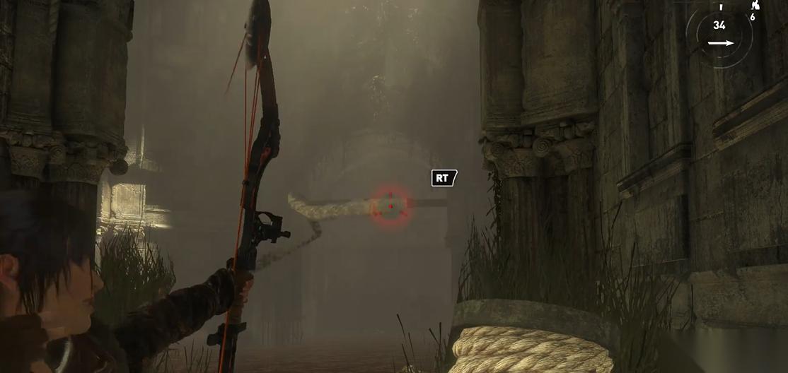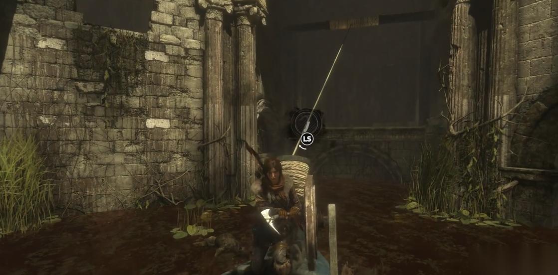 通往楼梯间的路上有踏板陷阱,踩中后立刻用弓箭射掉三个关键部件脱困。进入主场景后,藏宝室在中央,两侧是澡池,目标是通过水位变化打开通道。面对藏宝室时,先爬到中间的小船上,用空中缠绳杆子把船拉到左侧澡堂外,跳进去操作。这里需要手速:拖动滑杆后,立刻用绳索连接另一边的铰轮,再跳过去转动手轮固定闸门,防止水位回升。