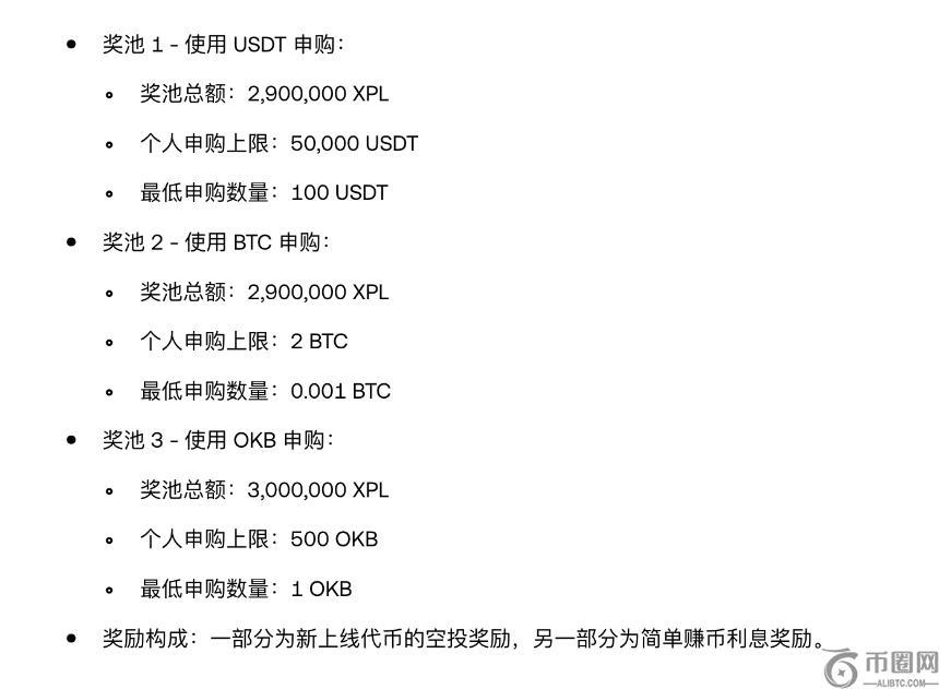 OKX 则借助 Plasma 的上线,推出了 XPL 的“空投赚币”活动,总奖池为 880 万个 XPL,其中稳定币奖池分配 290 万枚 XPL,仅需投入一周,资金占用时间较短。单个账户申购门槛为 100 USDT,上限为 50000 USDT。