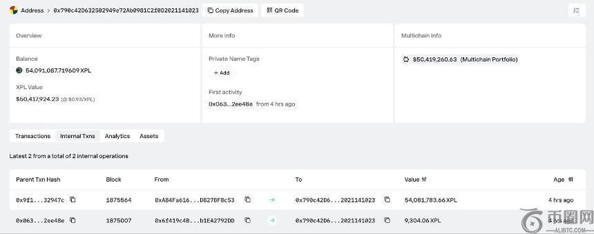 该投资者获得了5409万枚XPL,目前价值约5040万美元,交易价格在0.93美元至1.14美元之间,未实现利润高达4770万美元。