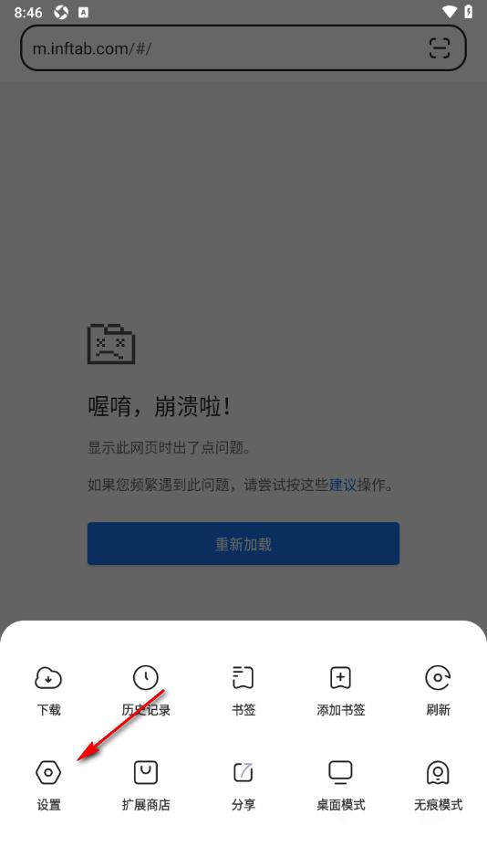 2.来到当前打开的窗口中,选择【设置】选项,将其点击一下。