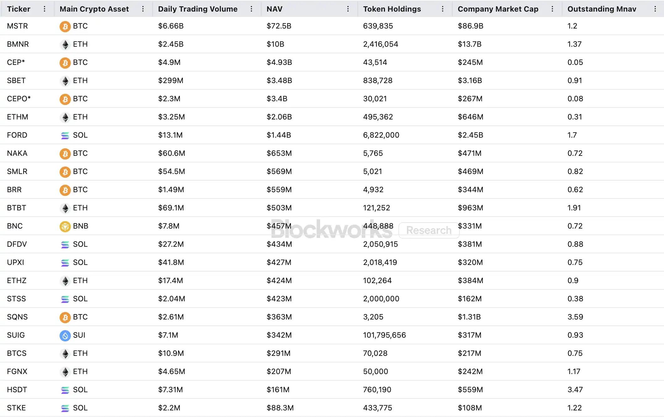 然而,这场资本狂欢在推高价格的同时,也引发了广泛质疑。MSTR 的 mNAV(市值与账面资产净值之比)一个月内从 1.6 跌至 1.2,而前二十家加密财库公司的 mNAV 更有三分之二低于 1。有关资产泡沫、内幕交易等质疑声层出不穷,当下这一新型资产配置潮流正面临前所未有的监管挑战。