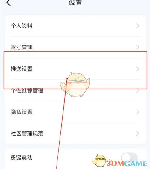 2、在设置界面中点击“推送设置”