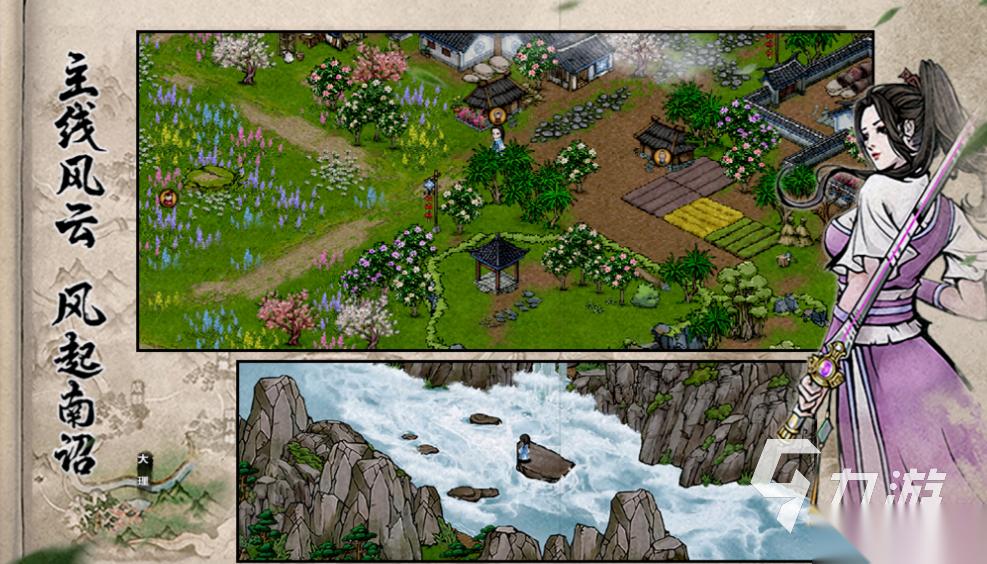 格斗江湖也是拥有水墨风背景的放置挂机类武侠主题手游,古典的武侠世界观与策略至上的玩法交相呼应,群英汇聚的游戏设定带来的游戏气氛更为热闹,你也将扮演侠客在如梦似幻的江湖世界感受冒险之旅,还有十余位性格迥异的侠客会陪你一起进入地图厮杀,精彩的格斗设定加上简单操作更受大家喜欢。