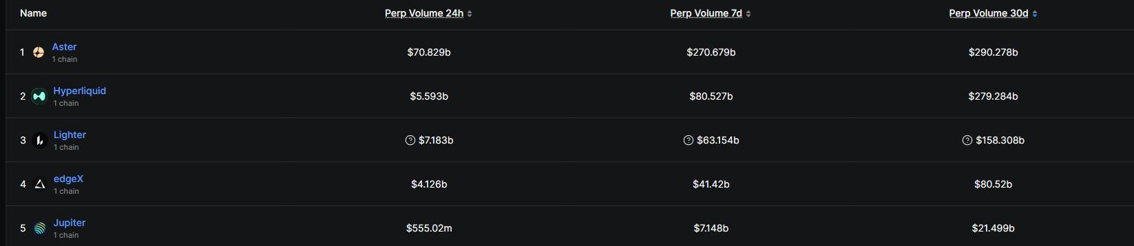 引领 DEX 浪潮的是币安支持的平台 Aster (紫苑花),过去 30 天内永续期货交易额达 2902.78 亿美元。该协议标榜其一键交易功能,在简单模式下最高杠杆可达 1,001 倍,在专业模式下则提供功能齐全的专业级工具。