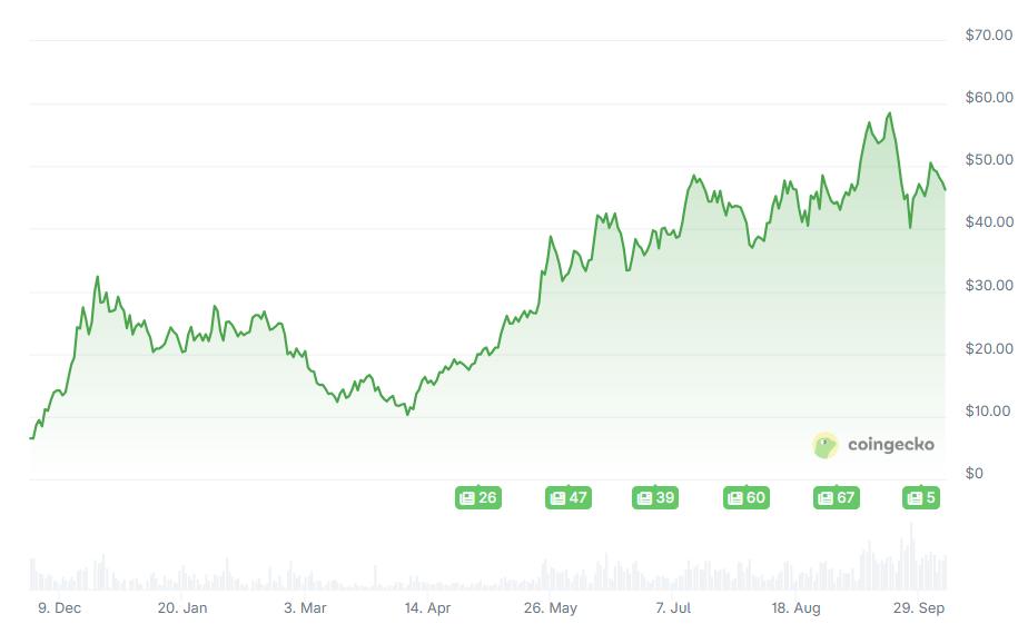 Hyperliquid 的故事仍然是 2025 年最杰出的成功案例之一。HYPE 代币最初在 2024 年底的交易价格约为 6 美元,在其去中心化的永久交易所和强大的零售参与度的推动下,飙升至 59 美元的峰值。