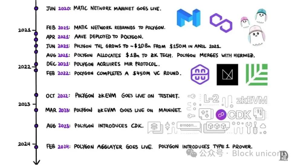 它最初以 Matic Network 的名称推出,是一个以侧链形式运行的单链扩容解决方案,并结合了 Plasma 和权益证明 (PoS) 机制。2021 年,Matic Network 进行了重大品牌重塑,更名为 Polygon,这体现了其从单链向更广泛的多链生态系统的转变,旨在为兼容以太坊的区块链提供多样化的扩容解决方案。