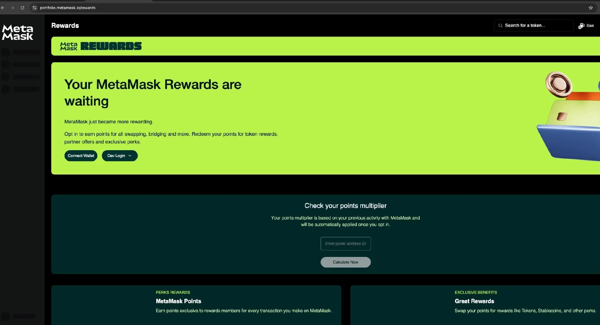 除此项公告外,另一个可被部分视作官方信源的则是更早之前 Mask 官网子页面曾泄漏的信息 —— 具体网站为 portfolio. mask.io/rewards ,但现在打开会被立即重定至 Dashboard 主页,该子页面已不可见。