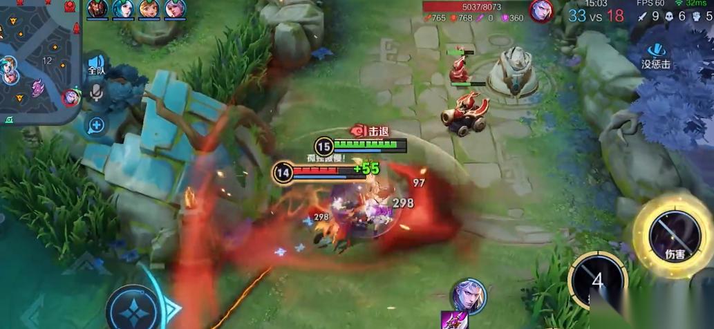实战中需注意敌方阵容和核心控制技能。面对多控阵容,韧性装备和净化技能是必备选择。若敌方后排缺乏位移,露娜可快速切入秒杀;反之则需依赖队友开团或拉扯消耗。后期团战前尽量保留大招,利用小兵或野怪刷新标记进行位移。装备成型后,露娜的单带和收割能力极强,但需避免单人深入敌方野区。