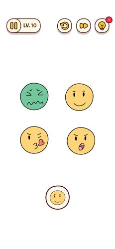 嘴型变化是重点第10关需要调整嘴型,我们点击第一行右边的表情,往下拖动,直到变成微笑的形状。这一步很微妙,得慢慢来。
