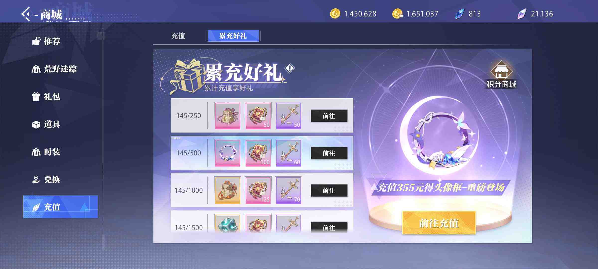累计充值145米,消费月卡党加前期猫头鹰手册;纯靠搬砖打造装备及养成。