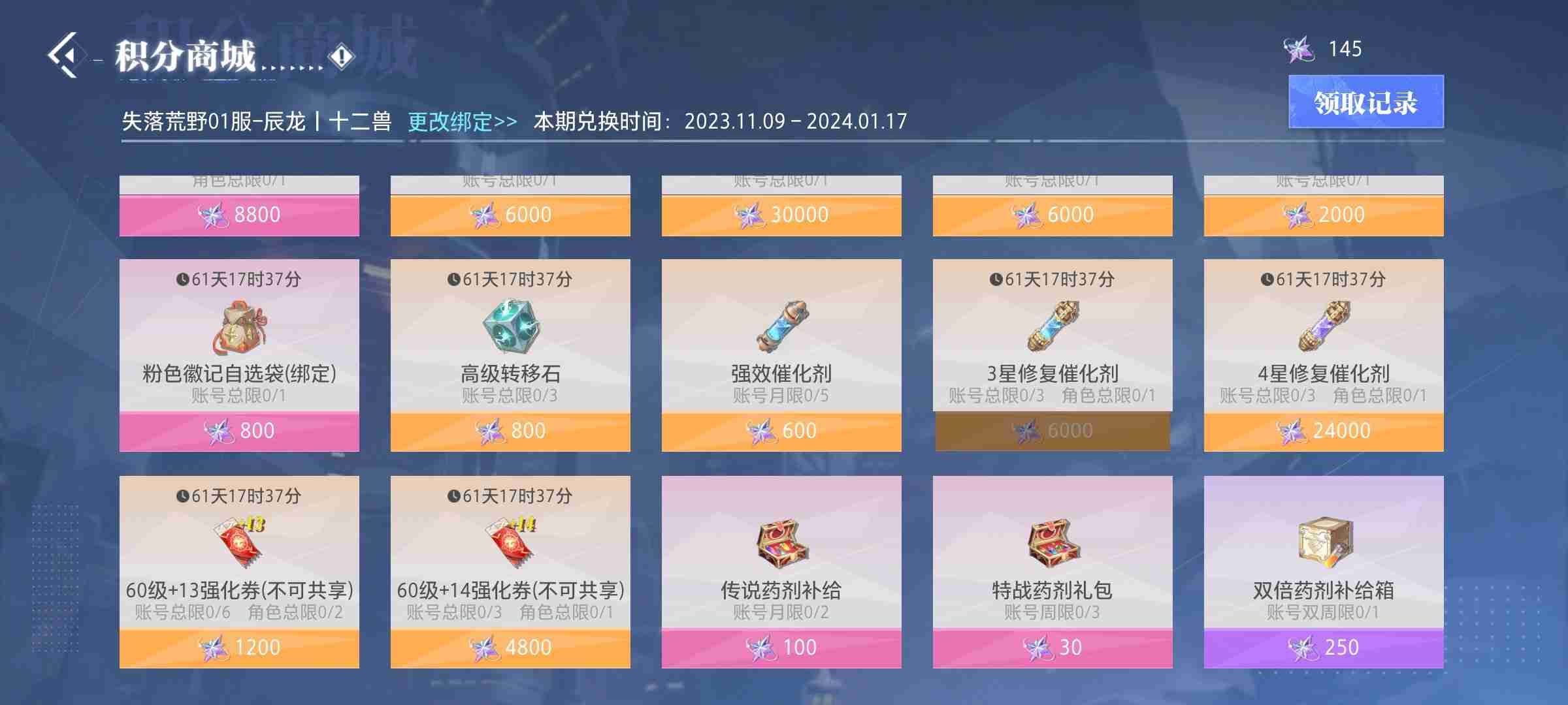 三、每日小号200点赞商店必做,日常暴的粉装囤着用于点赞,每周兑换金强化剂,不要紫色;月底多余赞兑换转移石。
