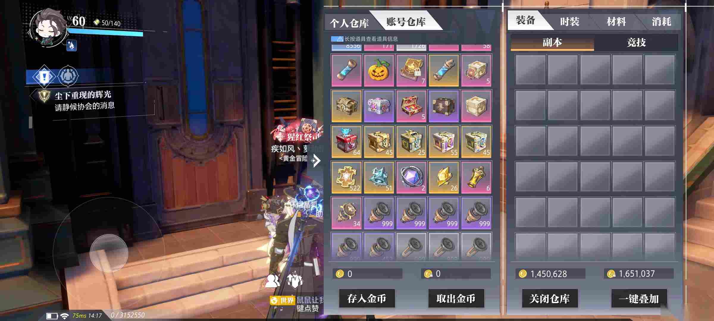四、7个角色半个月至一个月能屯1500W到4000万不等的绑金用于强化装备和升级金色装备;前期强化到12至13即可,惊奇小店购买箱子囤50开一次,出13和14卷累计两张以上再去强化。