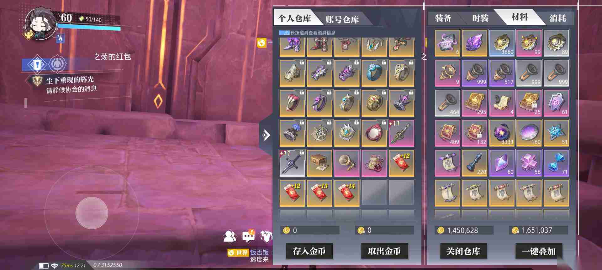 六、重点:武器、左右槽不要升级60级,推荐没有上18之前最好不升级60级,15强化以上可以通过转移石在小号上强化,节省大号金强化剂,建议小号囤50个以上金色强化剂再强化,修复最后一锤用三星修复剂,强化失败七次,第八次必成(强化保底)。