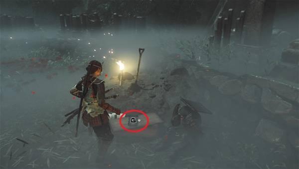 看到第二波盗墓贼时靠近触发剧情,彼岸花大将会把他们直接带走,我们只需要走到下图所示位置和信互动获得【刻印钥匙二】。