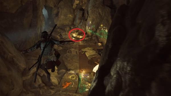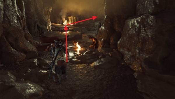 沿着里面的坡道走,打开坡道拐角的宝箱,走不远可以看到墙上的攀附点,直接爬上去。