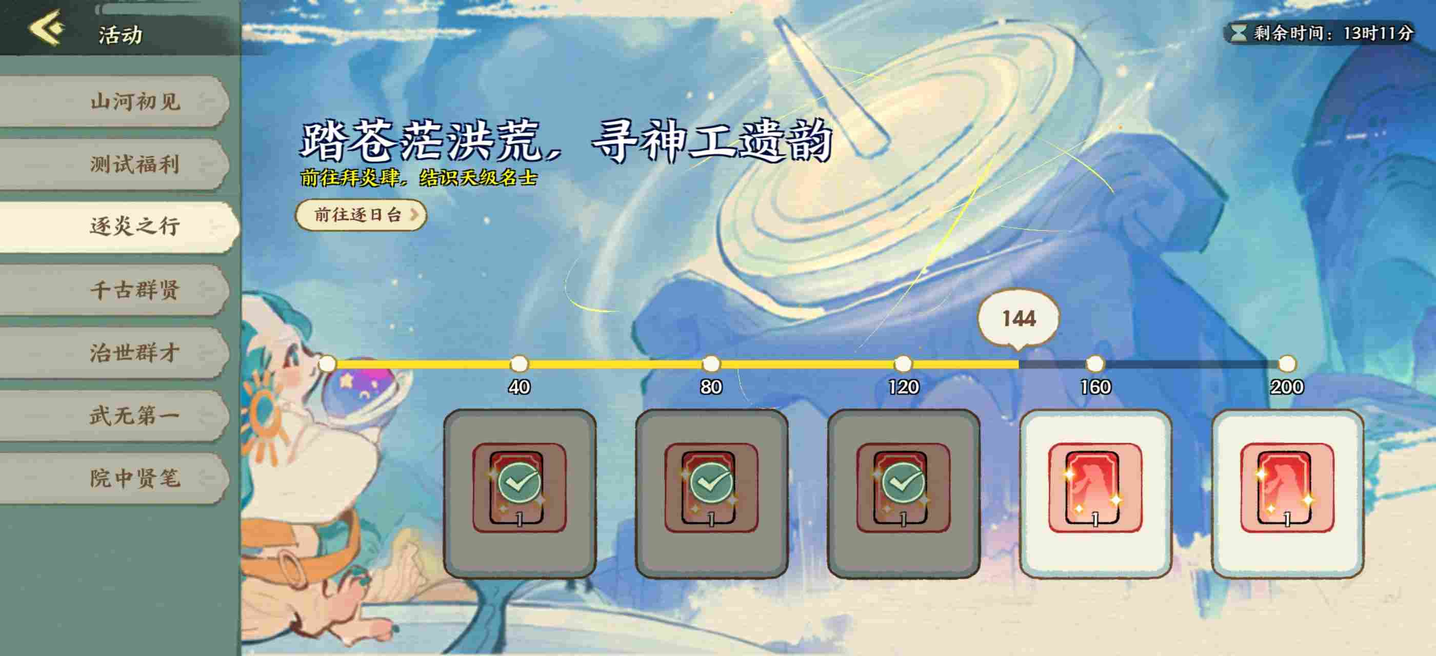 首先是开服第7天的逐炎之行,在公测时,各种礼包码+补偿+肝满,0氪在逐炎之行结束当天攒够4万元宝并不难。