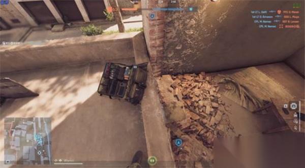 到达A点后上楼架盾,将补给包放置在蓝色铁皮边沿或墙角位置。