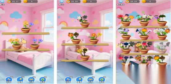 各类型盆栽花朵五彩缤纷,进入关卡之后就会看到各类型五颜六色的花朵。玩家在不同花盆当中种植三个相同花朵就能够轻松达到消除的目的,进入关卡之后会呈现出几十种不同特色花朵类型,将这些全部消除就能成功闯关。游戏有五彩缤纷的特色设计,以粉色小屋为主要背景,看上去靓丽多彩,让你心情愉悦。