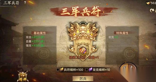三军兵符的价值主要体现在武将等级压制上。跨服争霸赛这类玩法中,武将等级差异会直接影响战斗表现,提前囤积三军兵符能让主力武将保持满级状态。尤其在新等级开放时,提前储备的御令可以瞬间将核心武将提升至当前上限,保持战力领先优势。需三军兵符和丹书铁券的使用逻辑类似,但更为灵活,因为它不受武将当前等级限制,即便是从1级开始使用也能快速成型。