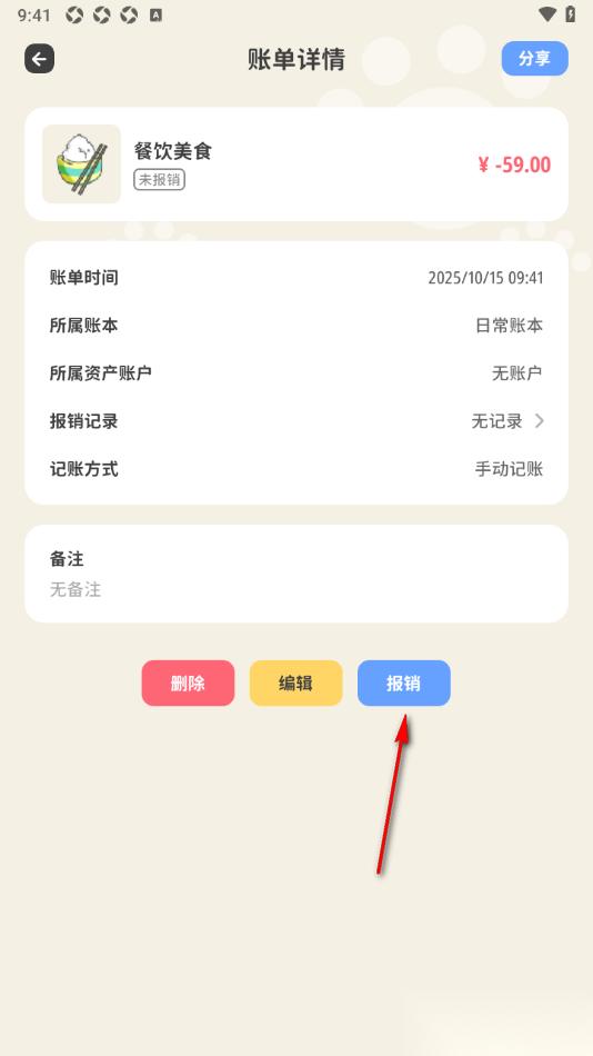 4.在页面上即可查看到显示的【报销】按钮,将其点击一下。