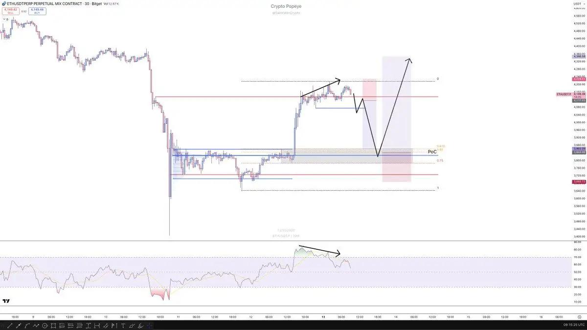 目前,短期支撑位预计接近 3,800 美元,阻力位接近 4,250 美元。分析师 @TedPillows 表示,如果 ETH 价格上涨,超过 95 亿美元的空头仓位将被抛售。这将导致突然的轧空,并导致价格飙升至 4,800-5,000 美元区间。交易员认为,突破这些水平后,连续的清算将推动价格上涨至 4,500 美元。