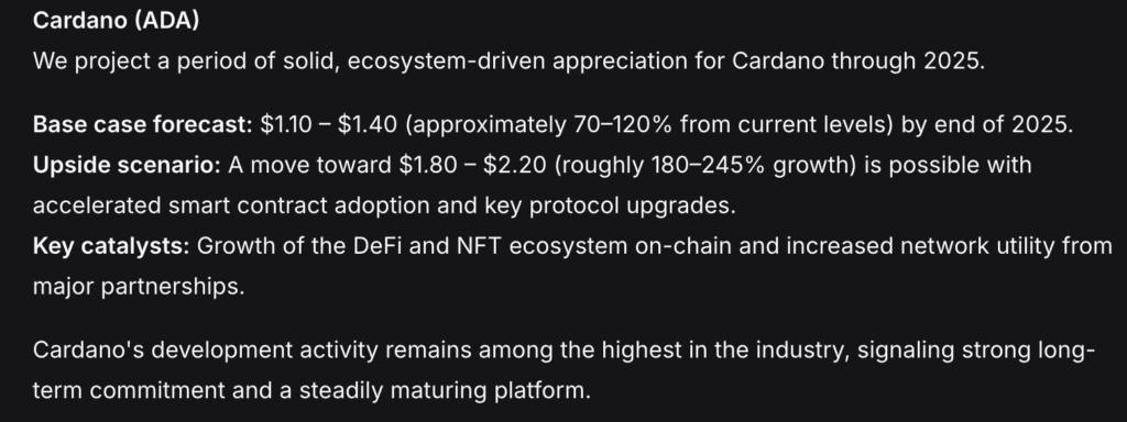 DeepSeek 预测 Cardano (ADA) 将在 2025 年底前突破 1 美元