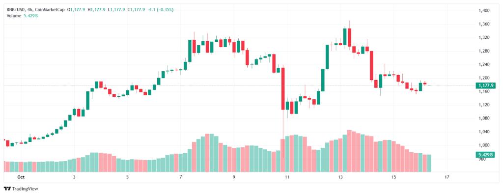 在主流加密货币中,BNB 继续以其稳定性脱颖而出。该币种从 10 月份的跌势中迅速回升,目前交易价格在 1,200 美元左右,并获得了稳健的支撑。分析师认为,如果目前的趋势持续下去,金价下一步可能会跌至 1,650 美元.