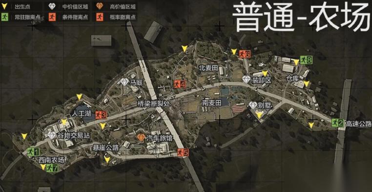 农场地图规模较小,适合新手练习路线规划与基础作战。汽车旅馆和装卸区是主要资源点,但装备价值普遍偏低,且易遭遇其他玩家。其优势在于地形简单,撤离条件宽松,便于快速积累初期资金。由于资源总量有限,长期收益不如北山或山谷。