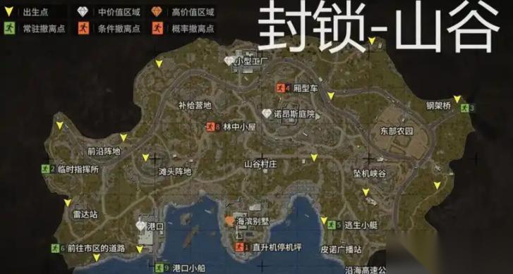 山谷地图以别墅和雷达站为核心高收益区域,物资集中且战斗节奏较快。港口和房车营地同样具备稳定产出,适合快速搜刮后撤离。该地图面积适中,撤离点分布合理,但别墅区域常爆发激烈交火,需警惕男团及其他伪装者。山谷的优势在于资源点间距较短,若合理规划路线,可在短时间内完成多区域搜索。