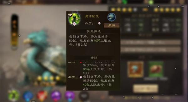 受到伤害后,若血量低于50%,恢复自身15%上限生命,最大40%。(共2次)