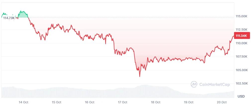 BTC 过去一周的价格走势(:CoinMarketCap)