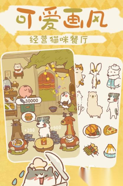 本作品使用十分温馨的经营方式,让一群可爱动物化身老板与服务员,热情招待各种客人。游戏把小鱼干作为虚拟币,玩家可以不断招聘员工处理订单,把整个餐厅的运行和制作环节打理的井井有条,收集小鱼干可以解锁特色的餐饮。游戏打造了简洁而又美好的童话风格,玩家可以自由装饰和探索区域,好友们也能交流心得。