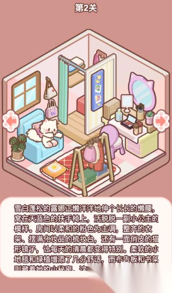 作为超级治愈的小猫咪装饰游戏,玩家将会在小屋里完成各种家具和装修的有趣任务。游戏里对玩家体力和时间没有限制,完全自由的购买和拖动家具完成摆放,上千种可爱装饰品,自由的打造浪漫房间。玩家可以在有趣的圣诞日,以及海滩上开启各种主题活动,营造充满自由和休闲的猫咪小屋,分享给好友赢得掌声和点赞。