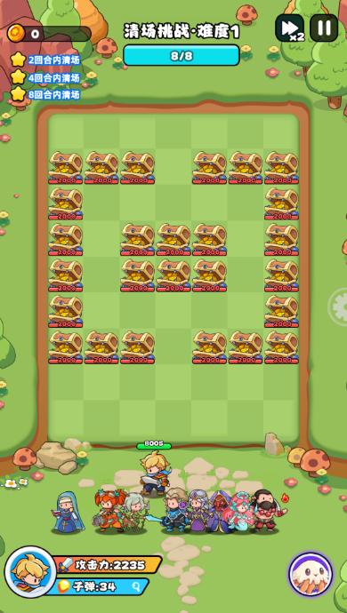 3、2个回合内清场才能获得三星,才能解锁下一个难度;