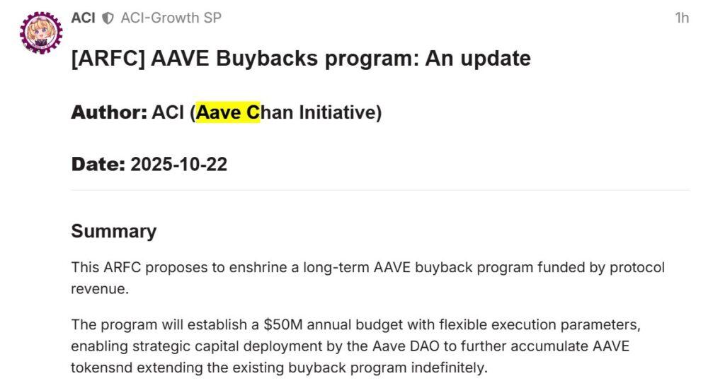 Aave 的去中心化自治组织公布了一项提案,将引入由协议收入直接资助的定期回购计划。