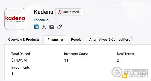 据Cbin Sights数据显示,Kadena项目的筹资总额将近1500万美元。
