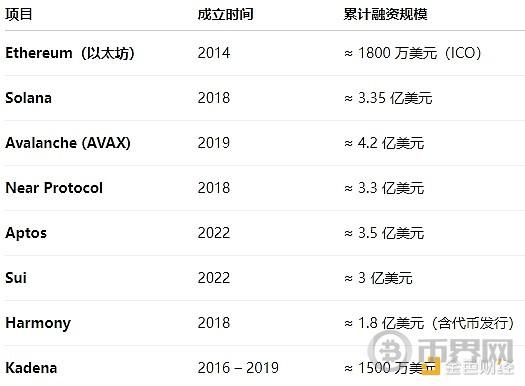 这一数额在公链赛道并不显眼。除了古早项目以太坊之外,Solana、Avalanche、Near、Aptos、Sui等项目融资额均超过3亿美元。