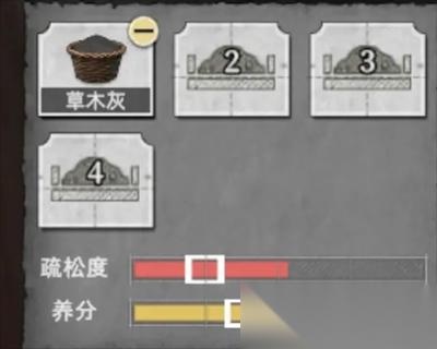 先加入 1 个「草木灰」可以看到疏松度刚好及格,营养高了