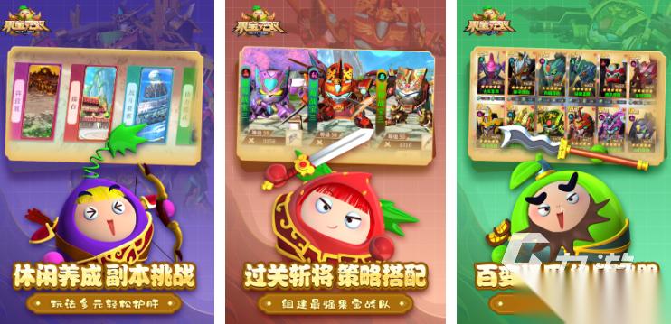 果宝三国将果宝机甲与三国题材结合,玩法非常的多样,而且机甲角色还会对应三国人物,机甲外观融合果宝特色与三国武将铠甲元素,技能结合三国武将招式,战斗采用回合制策略模式,玩家需组建3-5台机甲的战队,战前根据敌方阵容搭配机甲与技能。