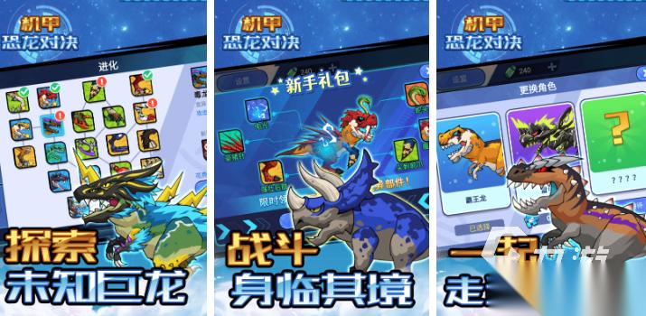 机甲恐龙对决把科幻机甲和史前恐龙放在一起,画面里既有未来感的机甲又有远古的恐龙,玩的时候操控机甲打恐龙,刚开始能选基础机甲,速度快的机甲灵活但攻击力低,力量大的机甲攻击力高但跑得慢,战斗的时候要利用地形,躲在石头后面能避开恐龙的冲锋,从高处跳下来偷袭能打更多伤害。