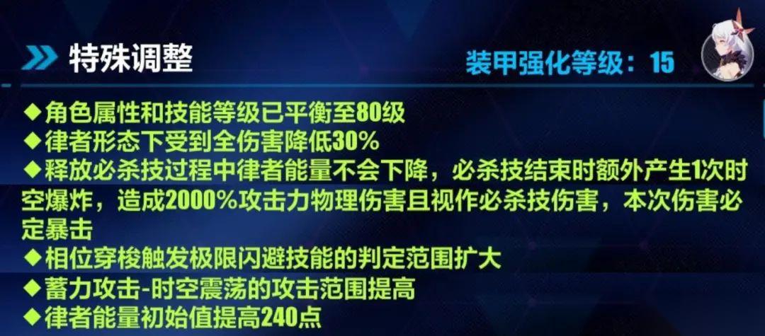 初始值让玩家可以出场时就可以释放蓄力进入律者状态,省去了提前攒律者槽的时间。