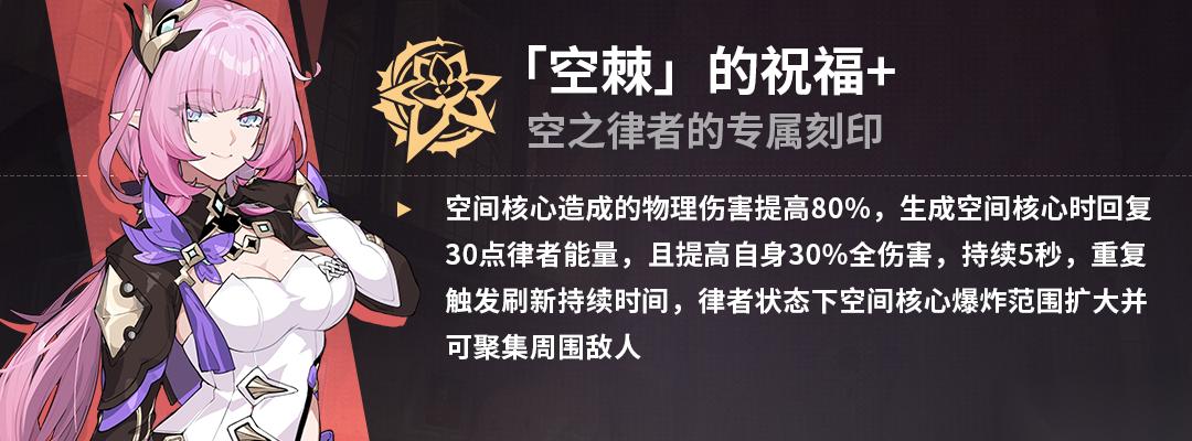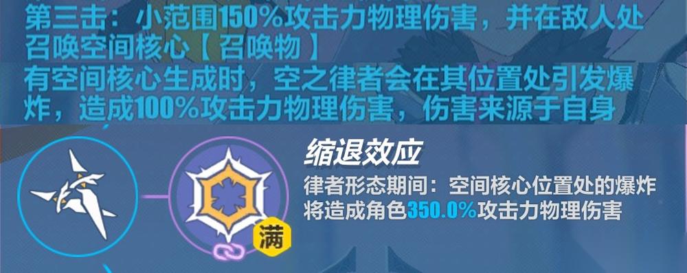 大招流的主要伤害来自于必杀技和【律令】,而律令的伤害又与【空间核心】有关,因此大招流的主要思路就是大量触发【空间核心】从而抬高角色伤害。与响指流直接利用【空间核心】伤害的思路有相同之处,又不完全相同。