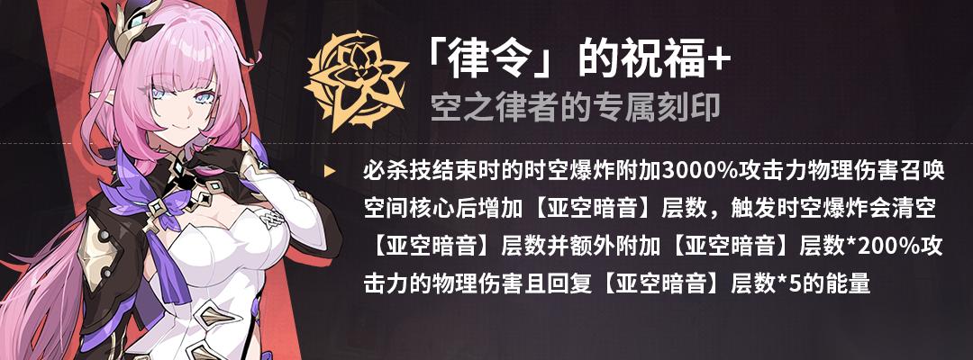 空律必杀技本身的伤害并不高,因此需要从其他方面进行额外补加强,于是增加了一段必暴的额外伤害进行补正。这个额外伤害必定暴击,搭配【律令】的情况下可以造成大量的伤害,是大招流的核心调整。