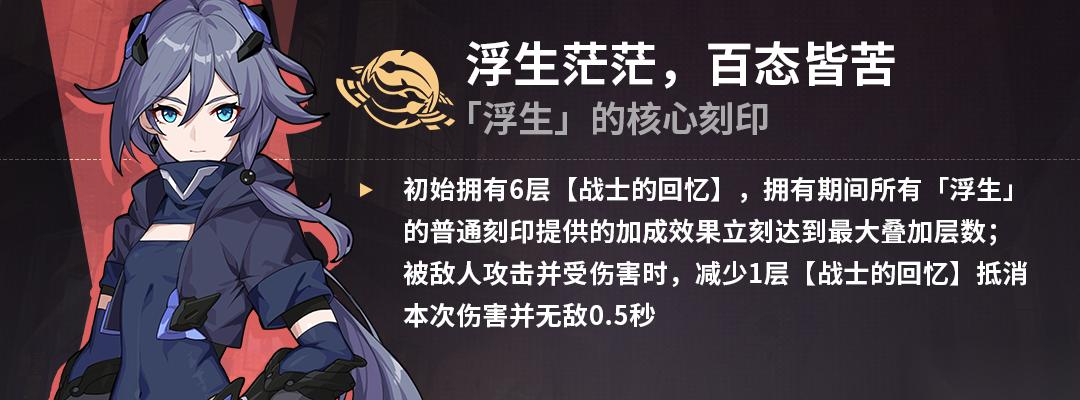 浮生的主要作用在于提供穿透,穿透对伤害来说至关重要,而6层无敌也可以有效地提高生存能力,可以很好的契合鏖灭刻印。