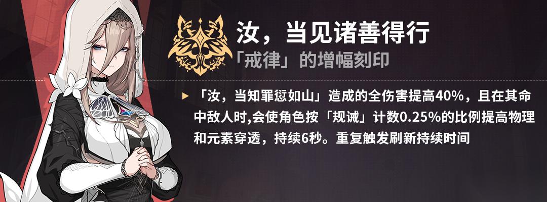 戒律Ⅱ是优质的穿透,增幅提供的穿透不需要进行升级,性价比极高。此外还能提供易伤、物伤、全伤、SP回复、额外倍率等效果。
