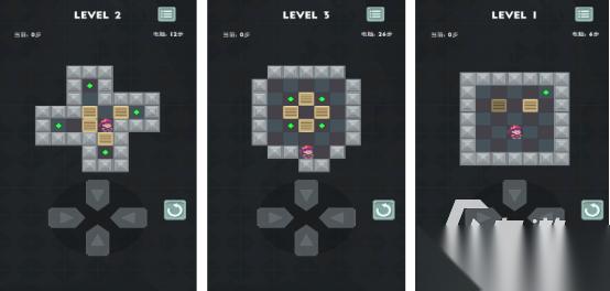 丰富的关卡内容都有不同的难度等级,从简单到困难大家可随意挑选,一旦体验过之后就会让自己欲罢不能。大家在体验时必须了解此游戏的主要规则,就是需要通过合理推动以及合理规划路线的方式,将箱子推到指定的位置上,可通过左右上下滑动。但是要知道的,那就是每个箱子只能推动一次,因此在每次推动箱子之前,必须做好合理规划。