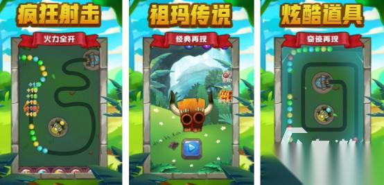 玩法和经典的泡泡龙特别相似,在开局之后会从出口涌现出不同颜色的球球,比如有蓝色或绿色等等,而从中间青蛙的嘴中又会随机吐出不同颜色的球球,大家需精准瞄准成功发射,将三个或多个相同颜色的球球连起来,就可快速消除,只要达到关卡的目标要求之后,即可解锁更高难度的关卡内容。