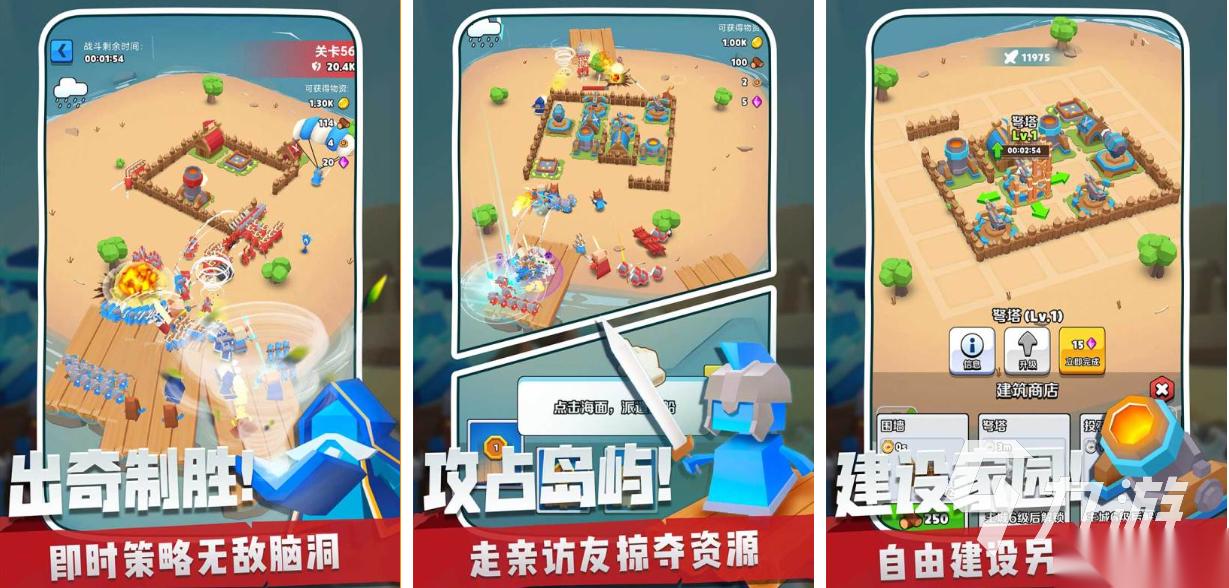 欢迎各位指挥官阁下来到奇幻的海岛地图上进行战斗讨伐,玩家可自由解锁超多可爱士兵进行反塔防的战斗,战斗策略玩法与养成士兵的机制都很耐玩,上手轻松的控制体系就可指挥军队完成PK,多样兵种合作厮杀战斗的快感令玩家大呼过瘾,以指挥家的身份带领士兵完成战役任务更显刺激,硬核的3D建模纹理塑造出独特的海岛战场。